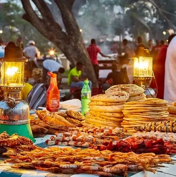 Forodhani Street Food in Zanzibar’s Stone Town is basically the island’s culinary red carpet. It’s like a foodie’s treasure hunt, with every corner offering something different and mouthwatering. The star of the show? The famous Zanzibar “Urojo,” aka the Zanzibar soup, a delightful, spicy mix of veggies, crispy fritters, and a tangy broth that will have your taste buds doing a happy dance . And let’s not forget the fresh seafood—grilled lobster, skewered shrimp, and fish so fresh, you’ll feel like you’re eating right off the boat!
