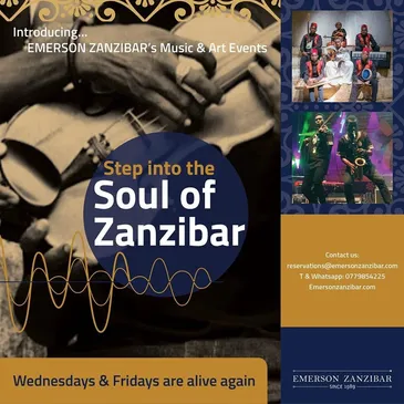 Every Wednesday and Friday nights, there is live music performed by Zanzibar locals artists at The Secret Garden Emerson Spice Hotel, Stone, a secluded and tucked away restaurant in a walled garden in Stone Town. The music lineup includes local favorites bands such as Zenji Boy na wenzake, Uwaridi Female Band, La Rumba, and Makadem.